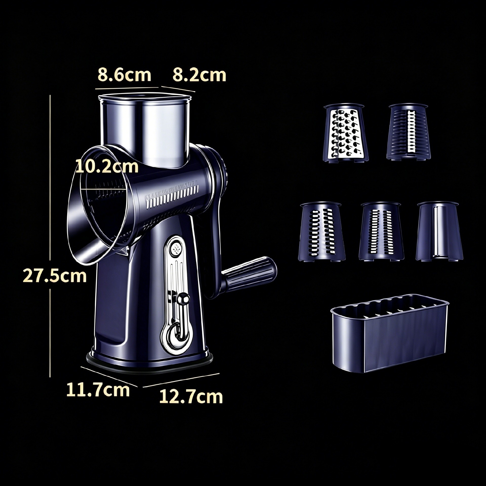 5 in 1 Rotary Drum Grater with square base
