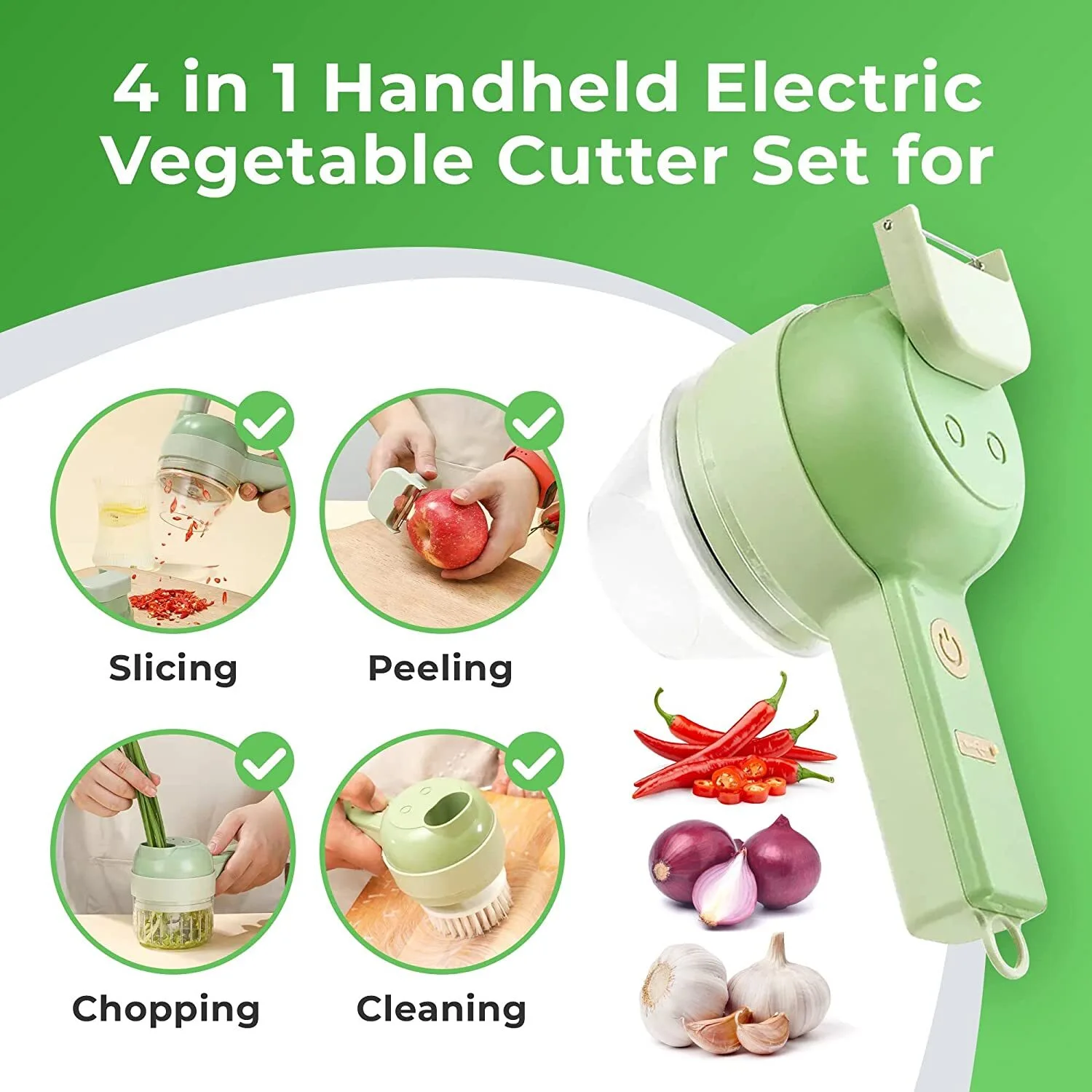 4 In 1 Handheld Electric Vegetable Cutter Set Wireless Gatling Portable Slicer Rechargeable Garlic Chopper